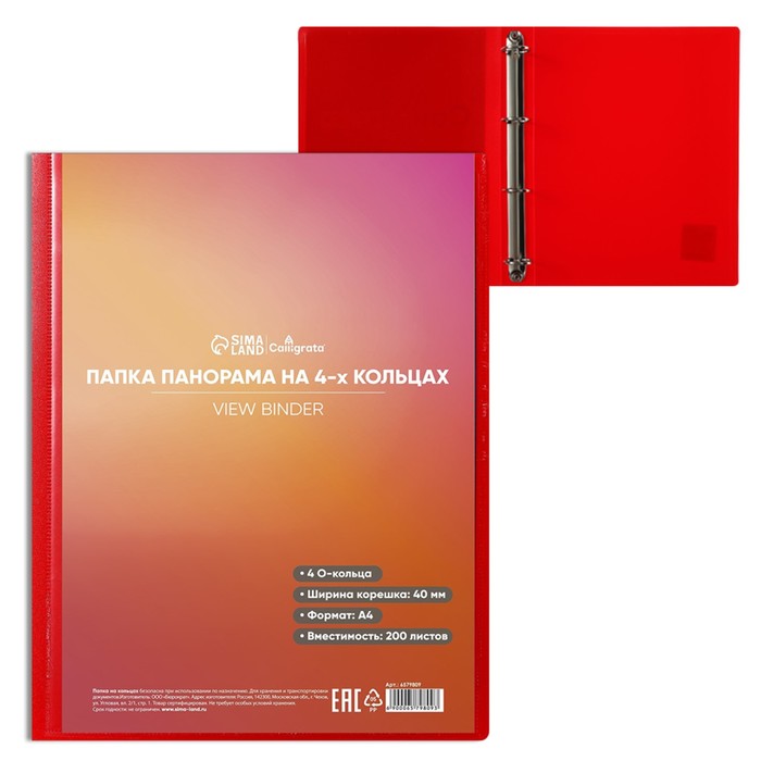 Папка на 4 кольцах А4, Calligrata «Панорама», 40 мм, 700 мкм, лицевой карман, красная, МИКС