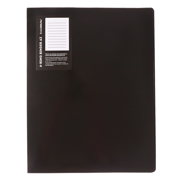 Папка на 4 кольцах А3, Calligrata TOP, 27 мм, 800 мкм, вертикальная, чёрная