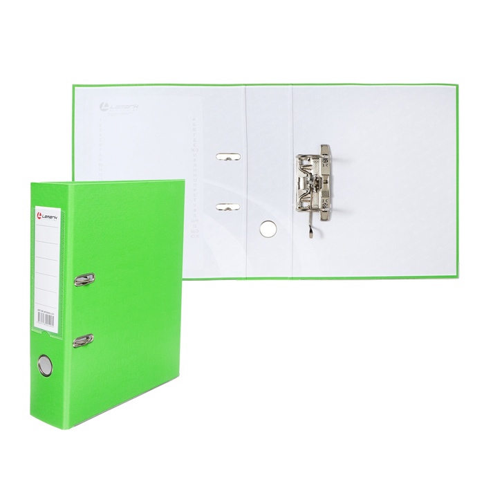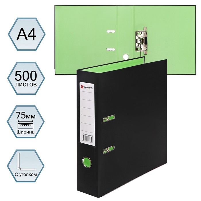 Папка-регистратор А4, 75 мм, Lamark, ПВХ, двухстороннее покрытие, металлическая окантовка, карман на корешок, собранная, черный/зелёный