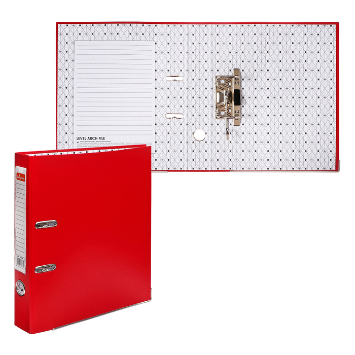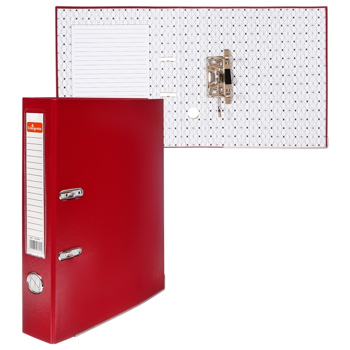 Папка-регистратор А4, 50 мм, Calligrata, ПВХ, тиснение «лен», металлическая окантовка, карман на корешок, собранная, красная, микс