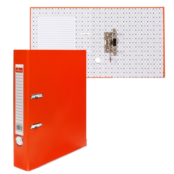 Папка-регистратор А4, 50 мм, Calligrata, ПВХ, тиснение «лен», металлическая окантовка, карман на корешок, собранная, оранжевая