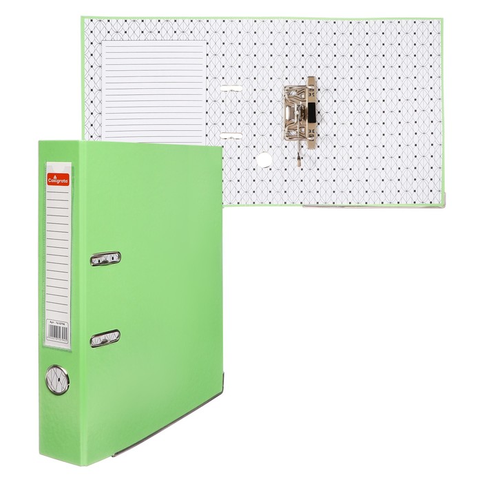 Папка-регистратор А4, 75 мм, Calligrata, ПВХ, тиснение «лен», металлическая окантовка, карман на корешок, собранная, светло-зеленая, микс
