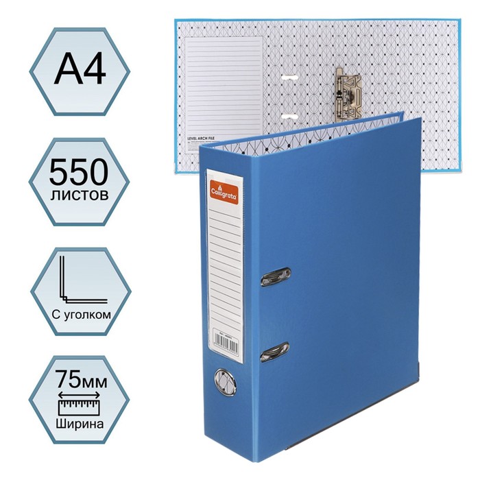 Папка-регистратор А4, 75 мм, Calligrata, ПВХ, тиснение «лен», металлическая окантовка, карман на корешок, собранная, голубая, микс