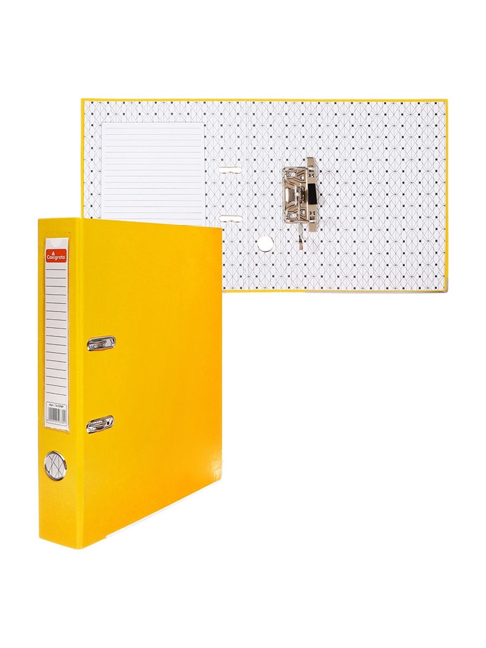 Папка-регистратор А4, 50 мм, Calligrata, ПВХ, тиснение «лен», металлическая окантовка, карман на корешок, собранная, желтая, микс