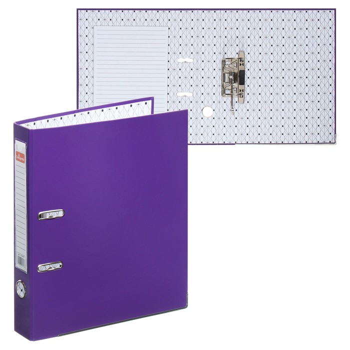 Папка-регистратор А4, 50 мм, Calligrata, ПВХ, тиснение «лен», металлическая окантовка, карман на корешок, собранная, фиолетовая, микс