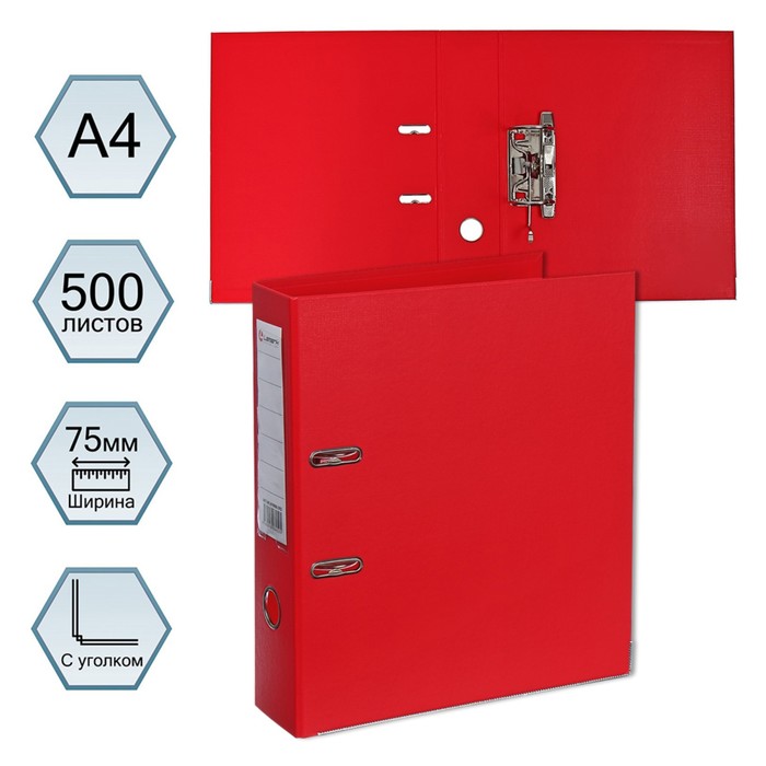 Папка-регистратор А4, 75 мм, Lamark, ПВХ, двухстороннее покрытие, металлическая окантовка, карман на корешок, собранная, красный/красный