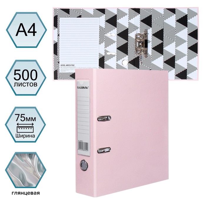 Пaпкa-регистратор А4 75 мм Calligrata ламинированная, бледно розовый