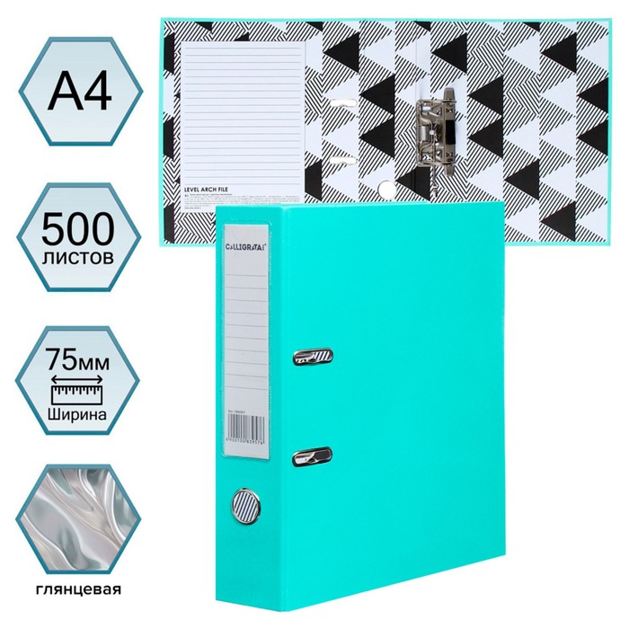 Папка-регистратор, Calligrata, А4, 75 мм, ламинированная, светло-мятный