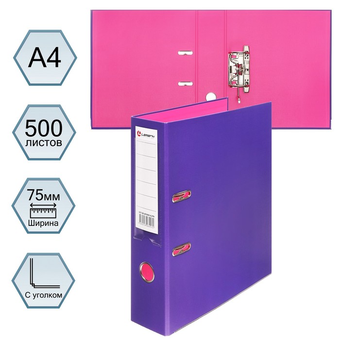 Папка-регистратор А4, 75 мм, Lamark, ПВХ, двухстороннее покрытие, металлическая окантовка, карман на корешок, собранная, фиолетовый/розовый