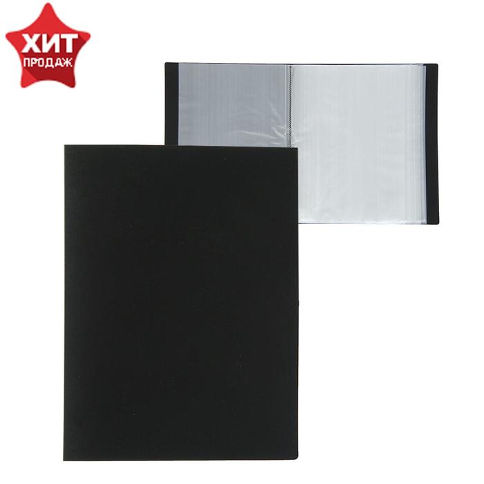 Папка с 100 вкладышами А4, 700 мкм, Calligrata, текстура «песок», чёрная