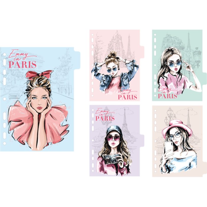 Разделитель листов A5 (175×210 мм) цветовой, 5 листов, "deVENTE. Emmy in Paris" полипропилен 140 мкм, тонированные с рисунком, индивидуальная упаковка