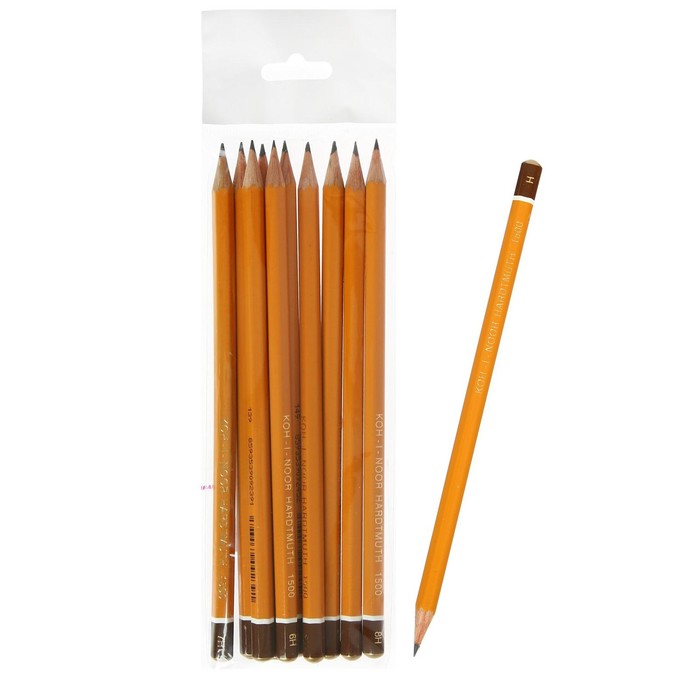 Набор карандашей чернографитных 10 штук, Koh-i-Noor 1500, H-H10, в пакете с европодвесом
