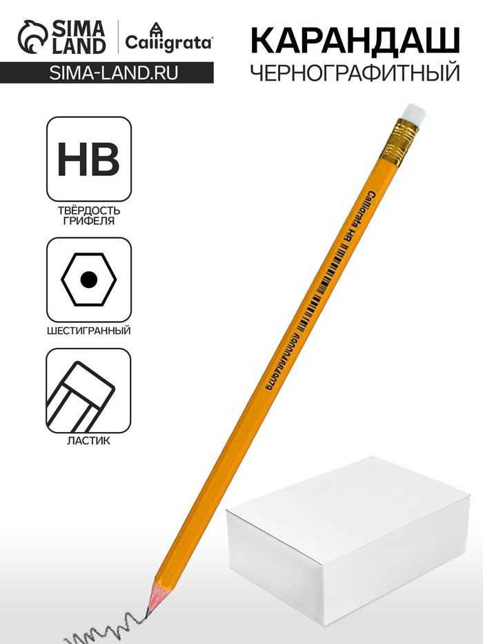 Карандаш чернографитный Calligrata, HB, с ластиком, оранжевый, пластик