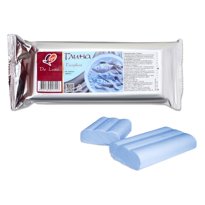 Глина для лепки «Луч. De Luxe», 500 г, не требует обжига, голубая