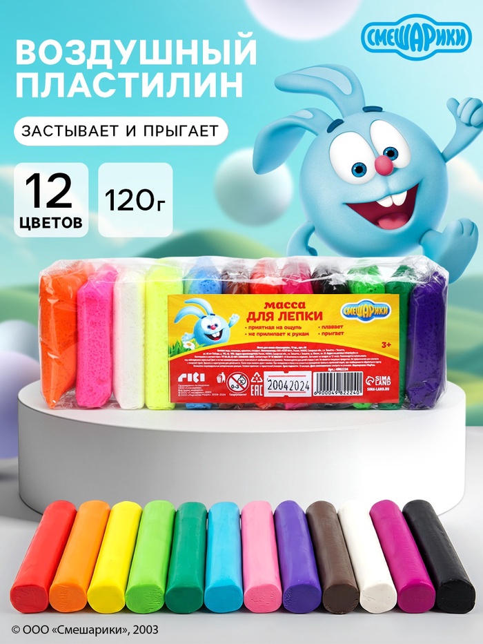 Воздушный пластилин, прыгающий «Смешарики», 12 цветов