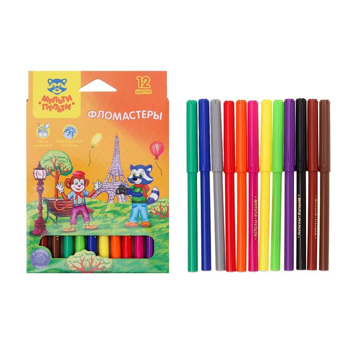 Фломастеры 12 цветов «Мульти-Пульти. Енот во Франции», смываемые