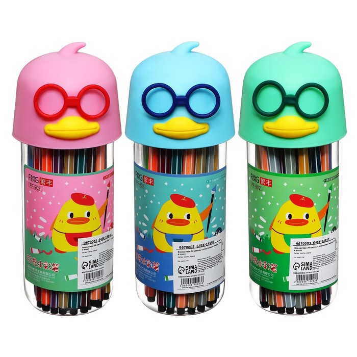 Фломастеры 36 цветов «Утка в очках», в пластиковом пенале, МИКС