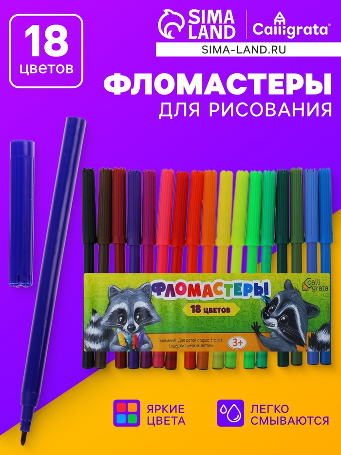Фломастеры 18 цветов «Мульти-Пульти. Енот во Франции», смываемые, картонная упаковка, европодвес