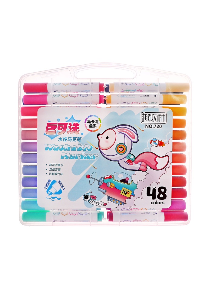Фломастеры 48 цветов в пластиковом пенала, смываемые водой
