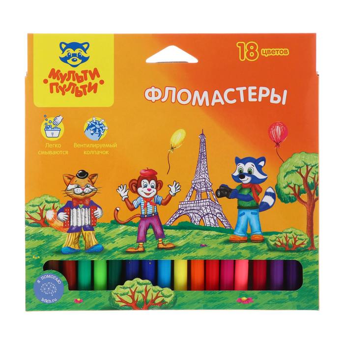Фломастеры 18 цветов «Мульти-Пульти. Енот во Франции», смываемые, картонная упаковка, европодвес
