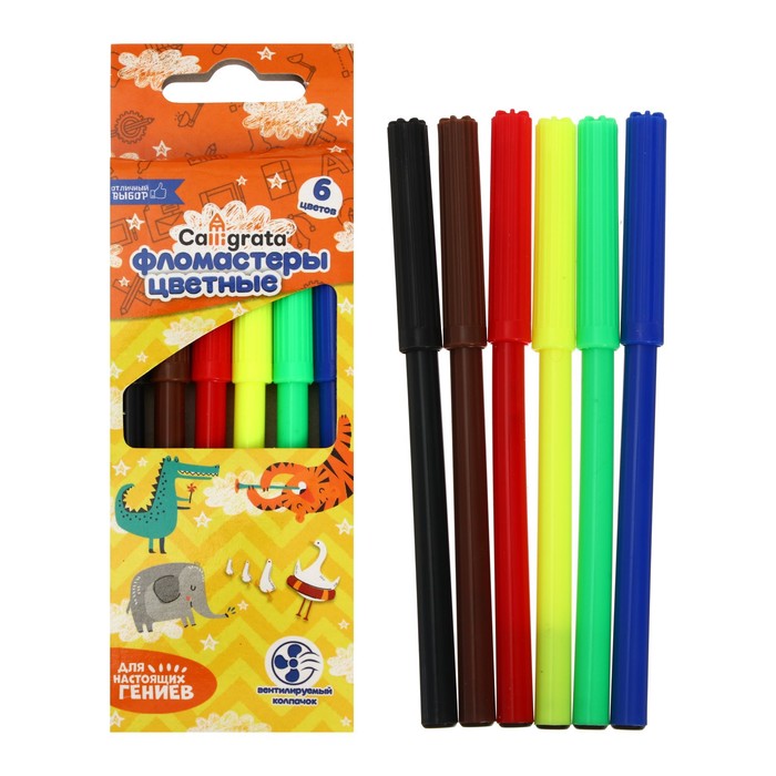 Фломастеры 6 цветов, вентилируемый колпачок, в картонной коробке