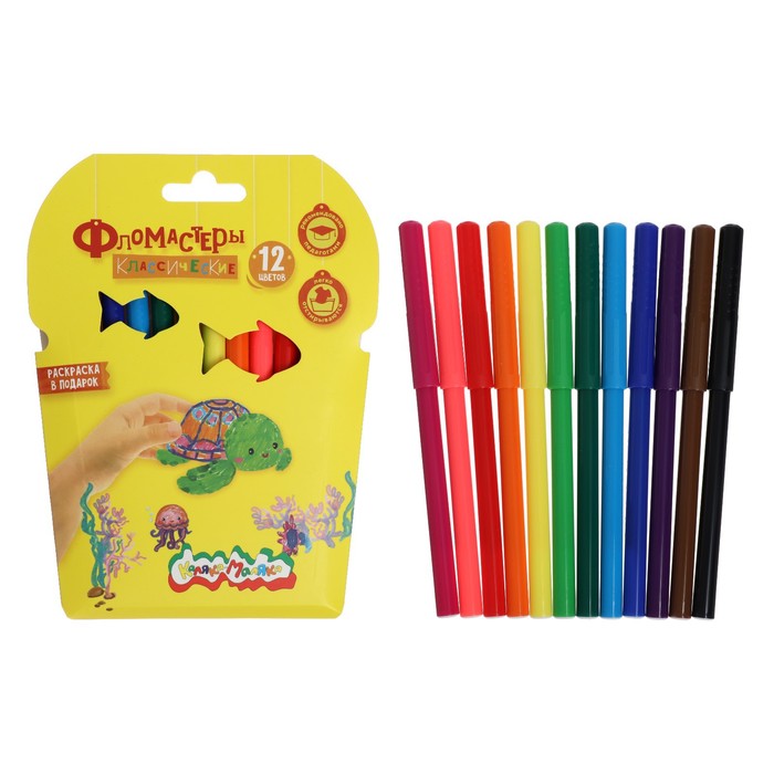 Фломастеры 12 цветов «Каляка-Маляка», классические, легкосмываемые, круглый корпус ФКРКМ12
