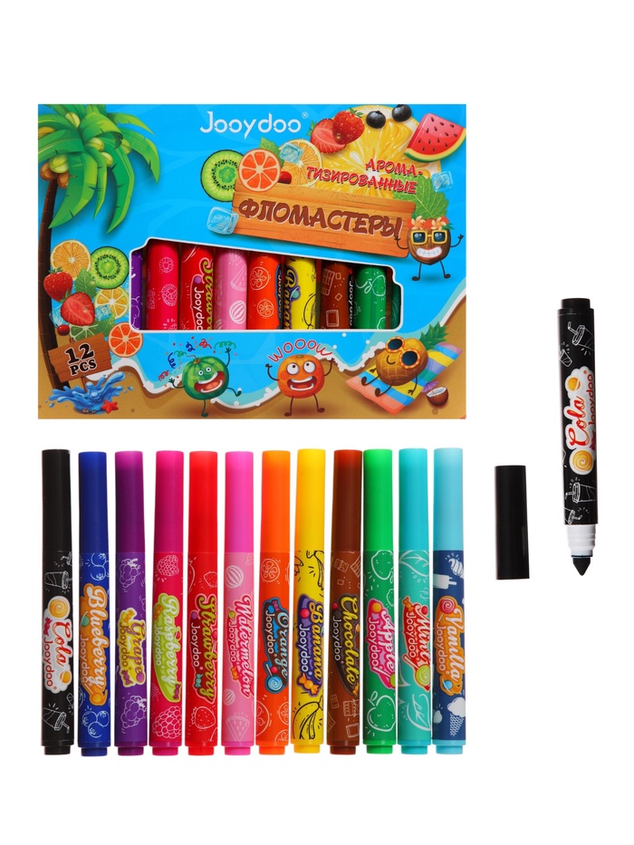 Фломастеры 12 цветов «Фрукты», ароматизированные, вентилируемый колпачок