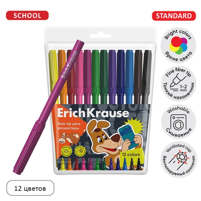 Фломастеры 12 цветов ErichKrause «Простоквашино», в футляре с европодвесом