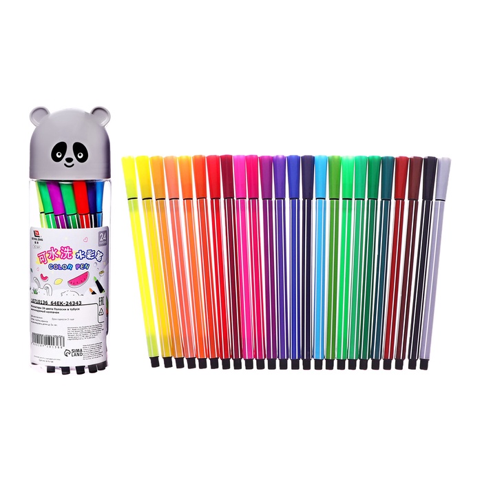 Фломастеры 24 цвета Полоски в тубусе вентилируемый колпачок, Панда серая
