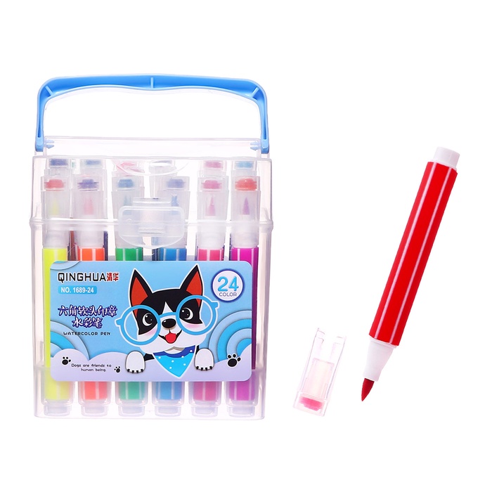 Фломастеры 24 цвета ТОЛСТЫЕ с печатью вентилируемый колпачок, голубой