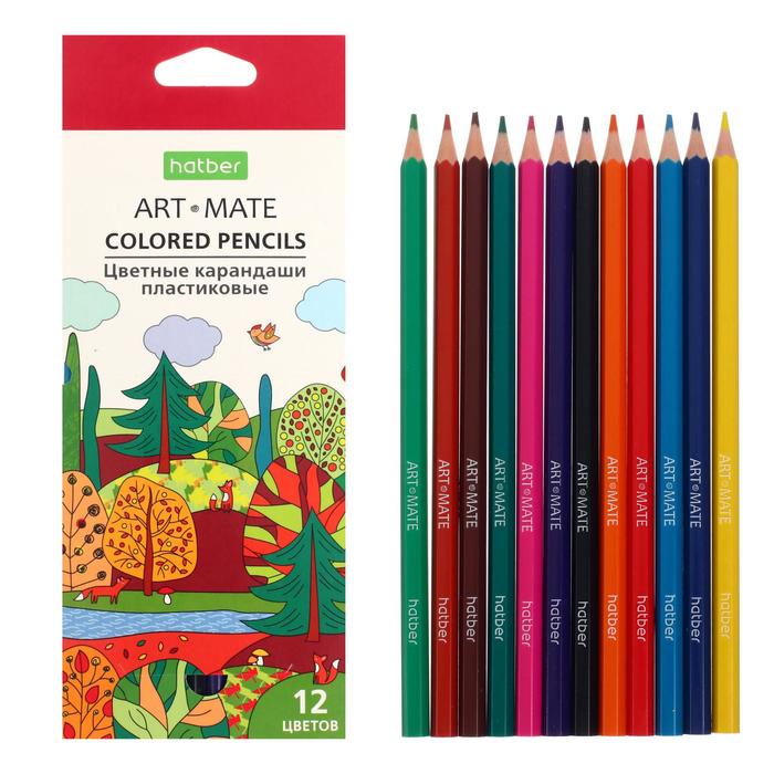 Карандаши цветные 12 цветов Hatber Mate пластиковые, с европодвесом