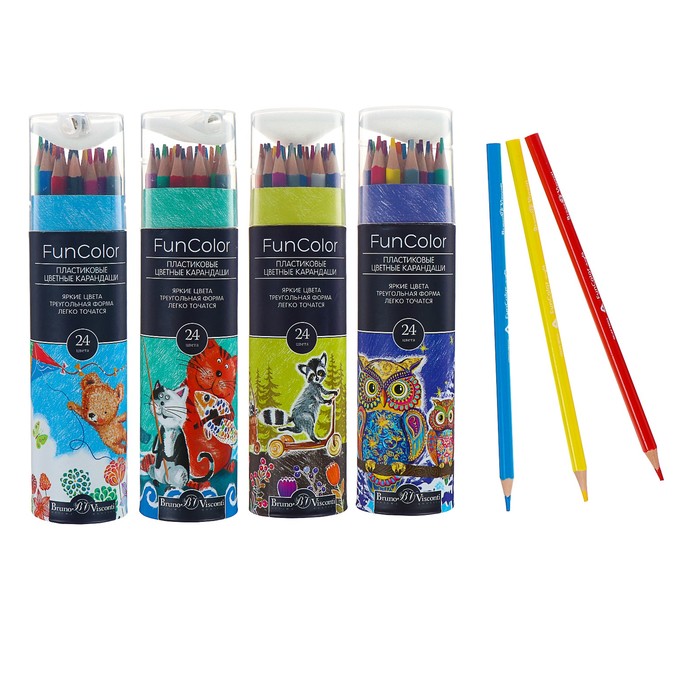 Карандаши цветные 24 цвета Funcolor пластиковые, в картонной тубе, МИКС