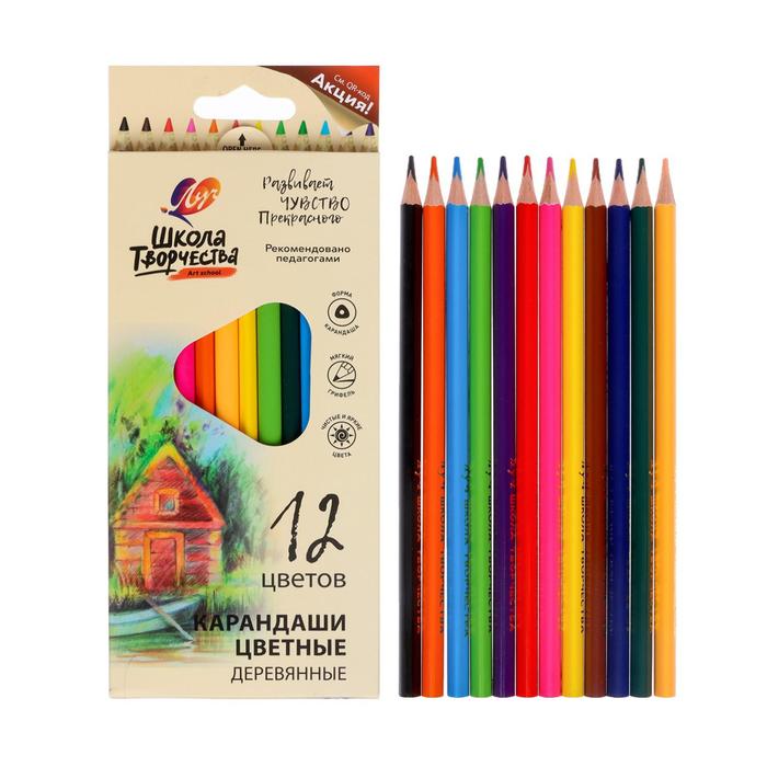 Карандаши цветные 12 цветов «Школа Творчества», трёхгранные