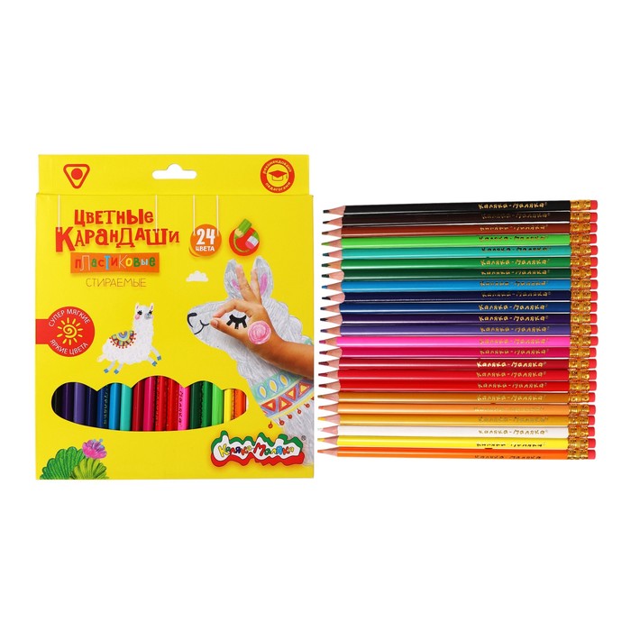 Карандаши цветные 24 цвета «Каляка-Маляка» СТИРАЕМЫЕ, с ластиком, трёхгранные, пластиковый корпус