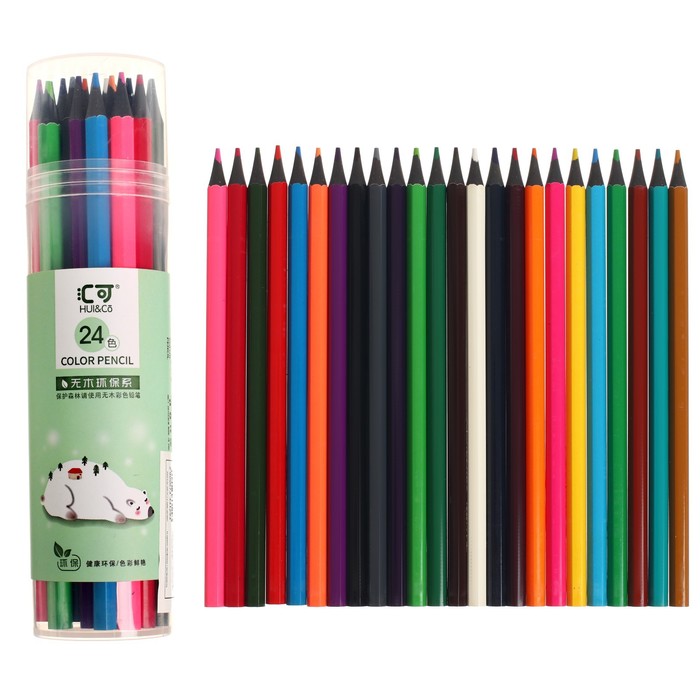 Карандаши цветные 24 цвета в тубусе, корпус шестигранный, пластиковый, чёрное основание