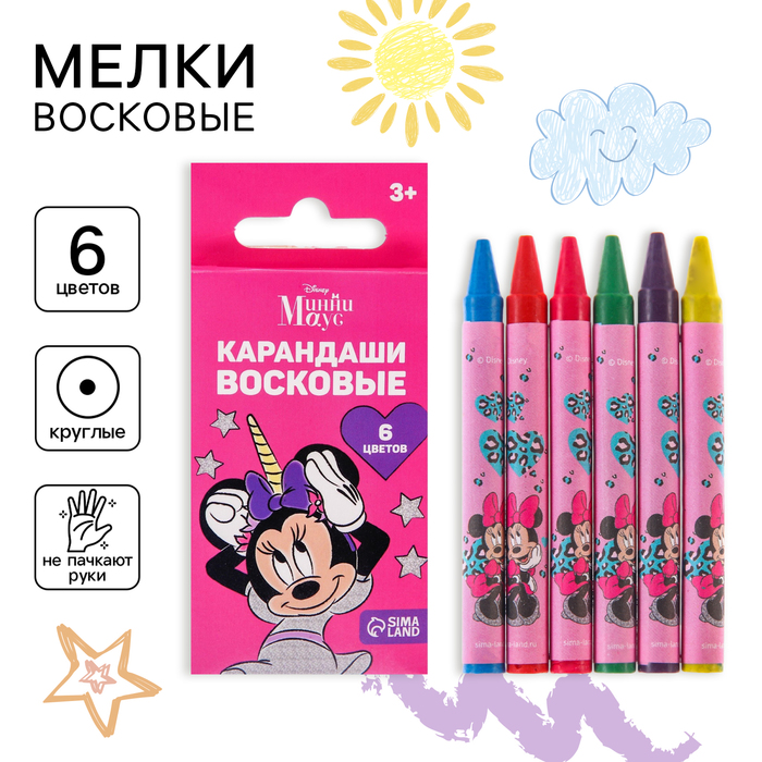 Восковые мелки - карандаши «Минни Маус», 6 цветов