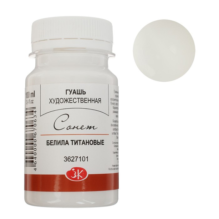 Гуашь художественная «ЗХК. Сонет», 100 мл, в банке, белила титановые, (3620101)
