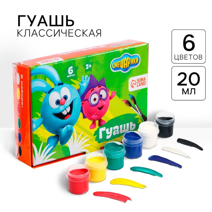 Гуашь 6 цветов по 20 мл, «Смешарики», карамельная