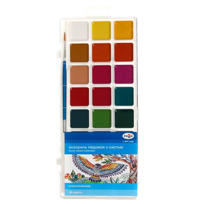 Акварель медовая «Гамма. Классическая», 24 цвета, с кистью, пластик