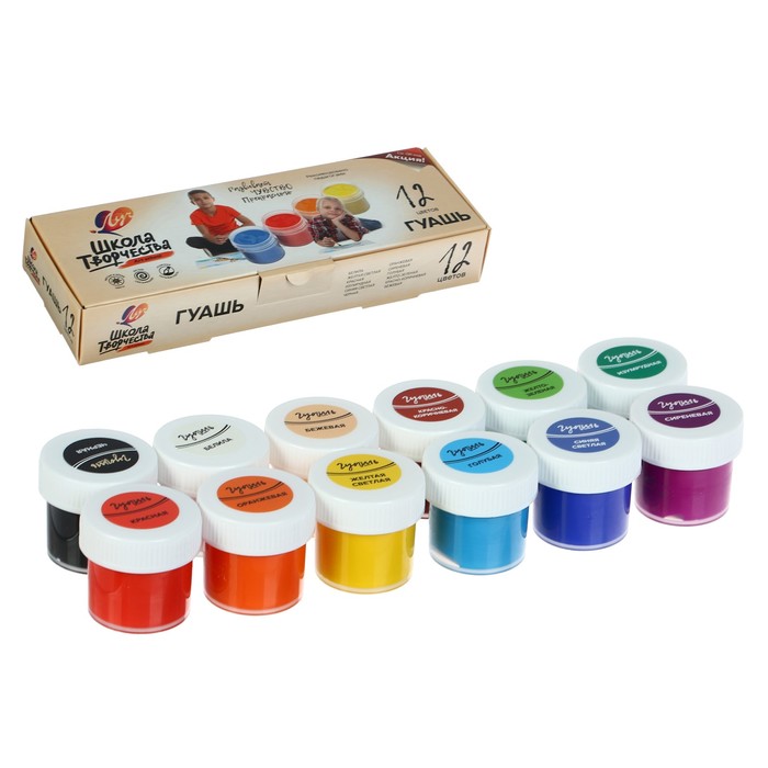 Гуашь 12 цветов × 20 мл «Школа творчества»