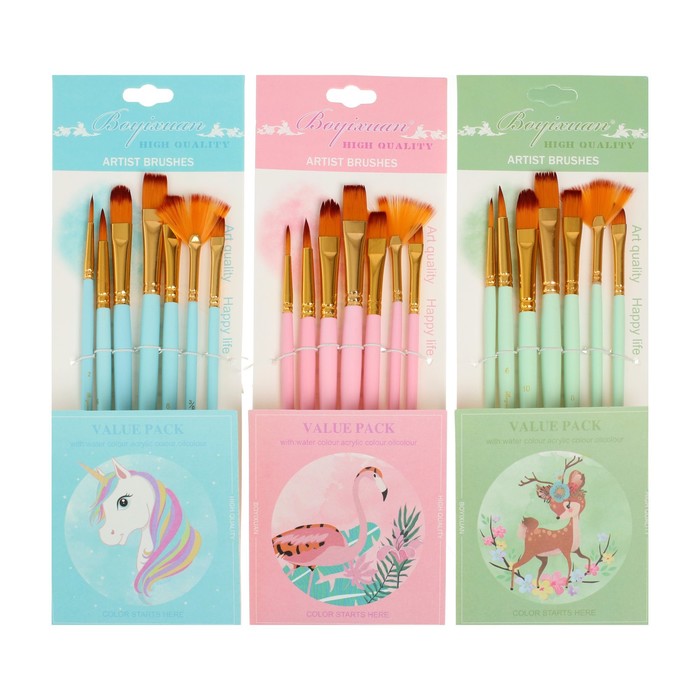 Набор кистей синтетика, 7 штук (№3/0,2,4,6,8,10,12), в блистере