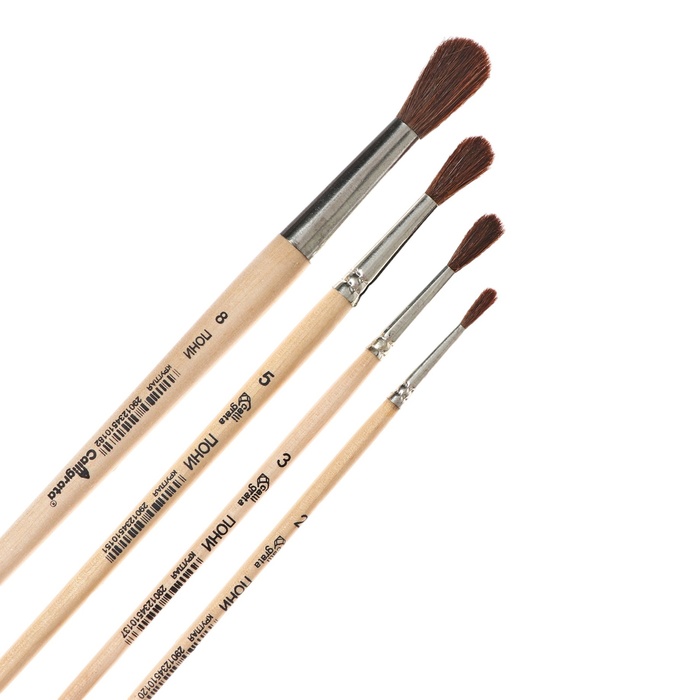 Набор кистей Пони 4 штуки, Calligrata №1 (круглые №: 2,3,5,8) ручка дерево, пакет