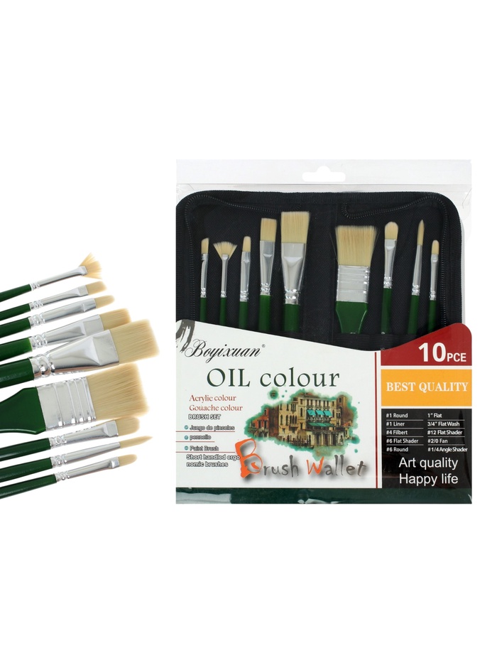 Набор кистей нейлон, 9 штук, закругленные, с длинными ручками