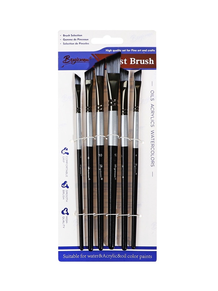 Набор кистей синтетика (№2,4,6,8,10,12) плоские, скошенные, 6 штук