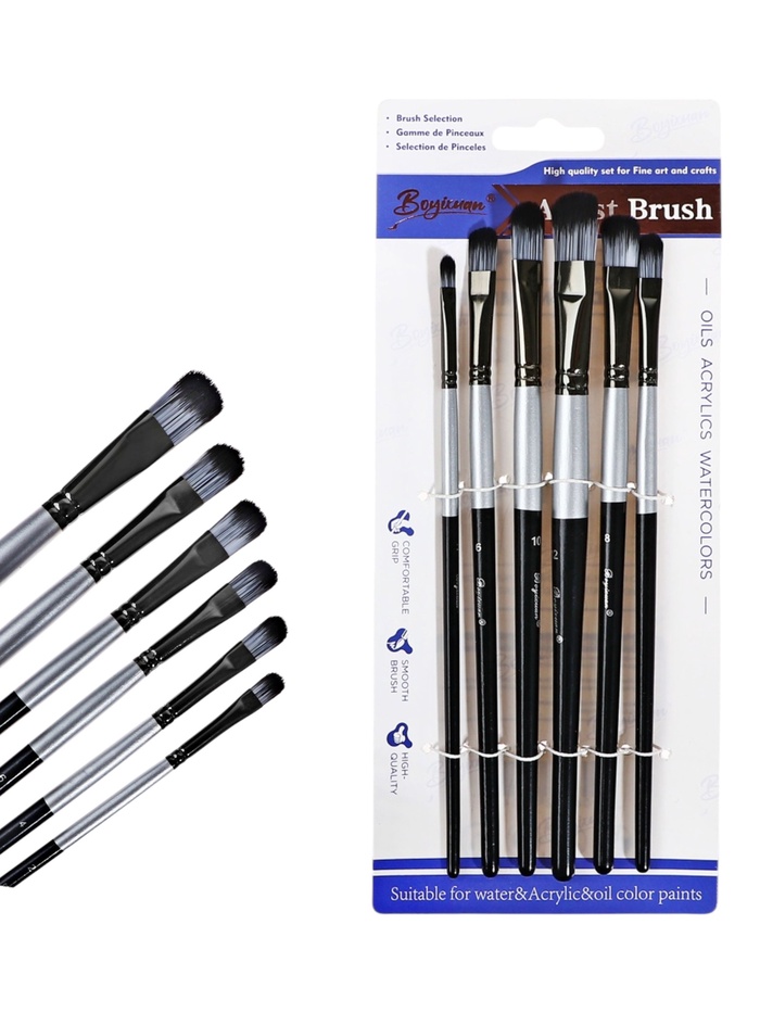 Набор кистей синтетика (№2.4,6.8,10.12) плоские, закругленные, 6 штук