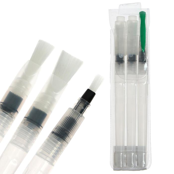 Набор кистей синтетика 3 штуки (№1,2,3) плоские с резервуаром для воды, туши, чернил