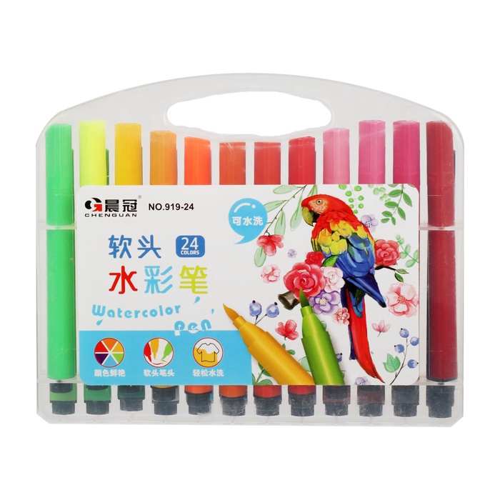 Фломастеры 24 цвета мягкая кисть в тубусе