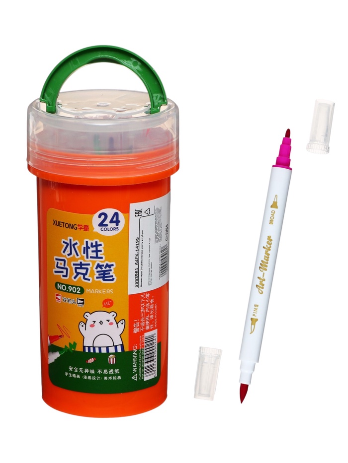 Фломастеры 24 цвета «Мышка», в пластиковом пенале с ручкой, вентилируемый колпачок