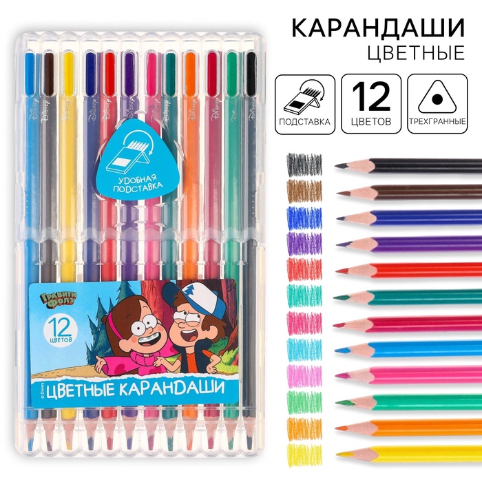 Цветные карандаши, 12 цветов, трехгранные, «Гравити Фолз»