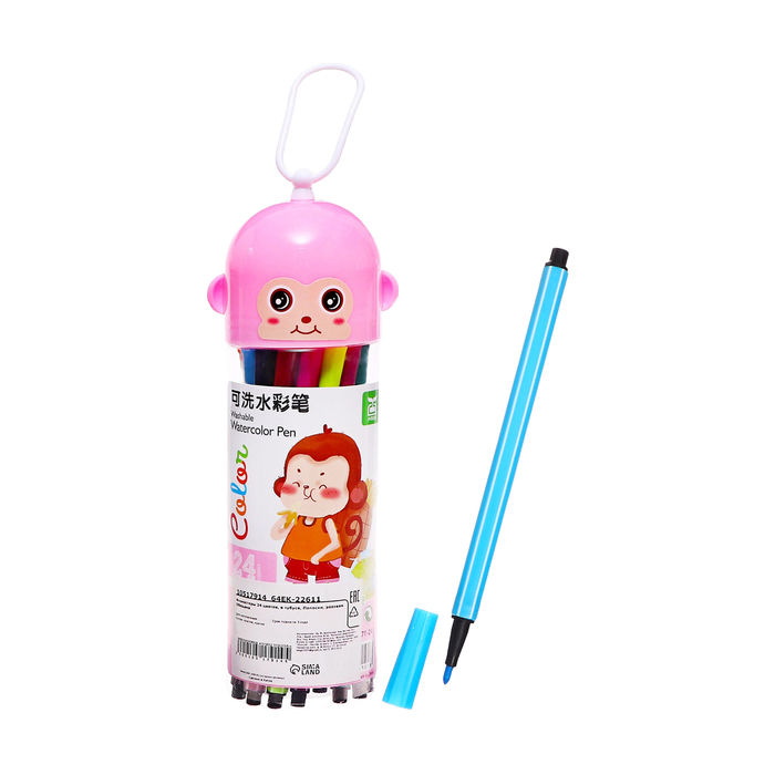 Фломастеры 24 цветов, в тубусе, Полоски, розовая Обезьяна